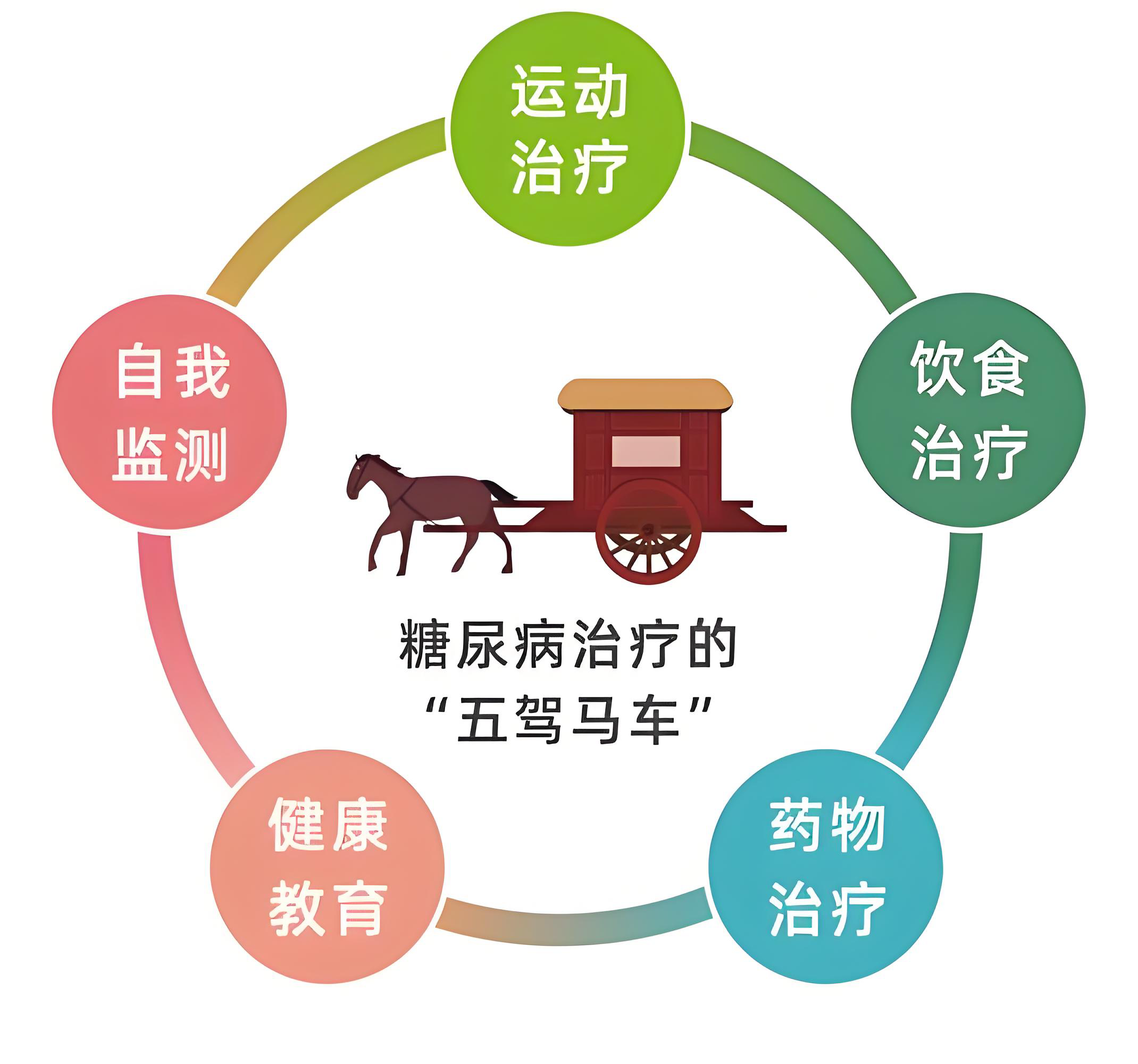 如果不幸确诊糖尿病,也请不要灰心。科学的管理能让您同样享有精彩人生。现代糖尿病管理讲究“五驾马车”并驾齐驱:
